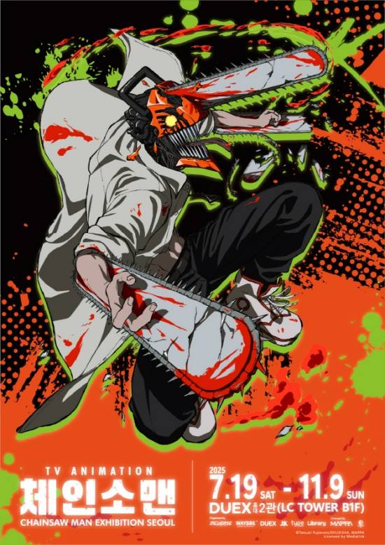 최근 웨이즈비는 TV애니메이션 '체인소 맨' 전시회를 오는 7월 19일부터 11월 9일까지 덕스(DUEX) 홍대 2관에서 개최한다고 밝혔다.