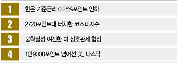 # 시장의 전망은 반반이다. 새 정부 출범이란 호재가 있지만 미 관세정책의 불확실성도 여전히 높아서다. 실제로 5월 마지막 거래일인 30일 국내 증시는 하락세로 돌아섰다. 코스피지수는 2697.67포인트로 하락하며 2700포인트대를 내줬다.