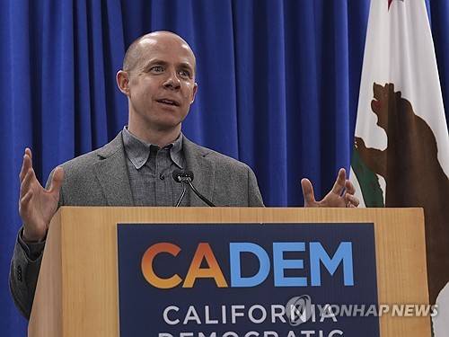 Rusty Hicks, the Chair of the California Democratic Party (CADEM) speaks at a press availability session ahead of the California Democratic Party's 2025 State Convention at the Anaheim Convention Canter in Anaheim, Calif., on Friday, May, 30, 2025. (AP Photo/Damian Dovarganes)