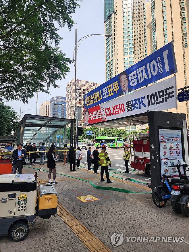 (서울=연합뉴스) 31일 오전 8시 47분께 서울 지하철 5호선 여의나루역∼마포역 사이 지하철에서 방화로 화재가 발생해 마포역 출입이 제한되고 있다. 2025.5.31 [독자 제공. 재판매 및 DB 금지]