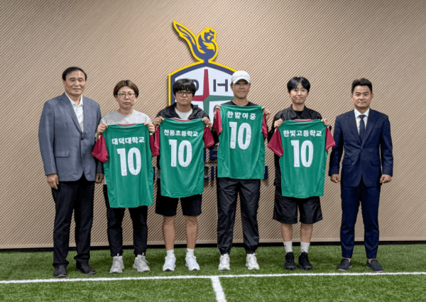 전달식에는 대전하나시티즌 김원택 단장과 대전광역시축구협회 이계혁 회장, 천동초등학교, 한밭여자중학교, 한빛고등학교, 대덕대학교 감독 등 관계자가 참석했다.