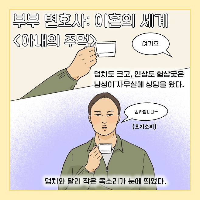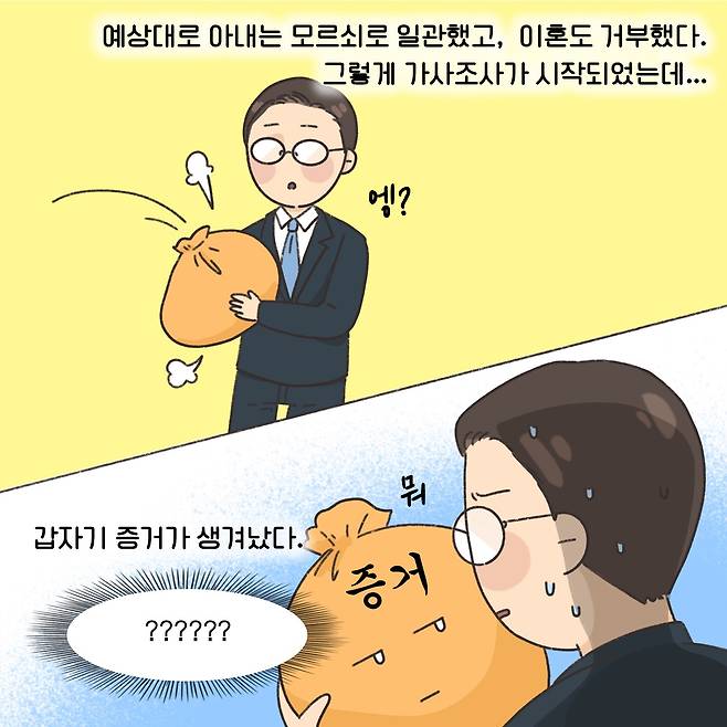 (※이 기사는 이혼 소송 과정에서 필요한 법률 지식을 웹툰 형식으로 이해하기 쉽게 제공할 목적으로 제작됐습니다. 실제 사례를 각색한 내용으로 언급되는 이름과 지명 등이 실제와 같은 경우가 있더라도 이는 우연에 의한 것임을 밝힙니다.)