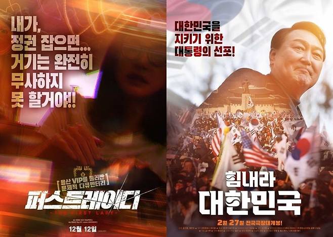 이후 2월에는 영화 '힘내라 대한민국'이 개봉하며 맞부딪혔다. 영화는 대한민국의 분단과 이념 대립의 역사를 조명하며 오늘날 한국 사회의 정치적 혼란을 직시한다는 내용을 담았다. 해당 영화는 윤석열 전 대통령이 비상계엄을 선포한 배경과 정국 혼란 등을 보수적인 시각에서 바라본 작품이다.