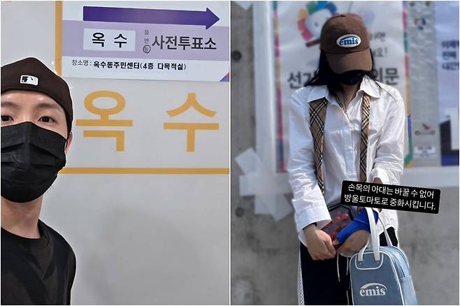 아이유는 투표소 앞에서 인증샷을 남겼다. 무채색 모자와 체크셔츠, 흰색 마스크 등을 착용했다. 무채색 패션으로 색깔 논란을 사전 차단했다.