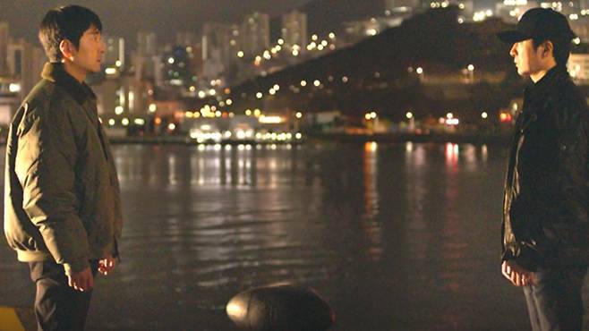 밤바다를 배경으로 마주 선 형제의 장면은 감정의 골이 얼마나 깊은지를 암시하며 어둡고 정적인 화면 속에서 조용히 고조되는 긴장감이 돋보인다. 극도의 불신과 서로의 진심을 알 수 없는 시선은 영화가 지닌 심리 스릴러 요소를 더욱 부각한다.