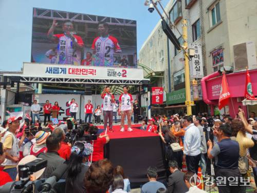 김문수 후보는 이날 무대에 올라 자신이 당선된 후 이양수 의원이 하라는 대로 100% 해내겠다고 장담했고. 이양수 의원은 "김문수 후보가 대통령이 되면 동서 고속철도가 뚫리고 설악권이 더 잘 살게 될 것"이라고 호소했다.