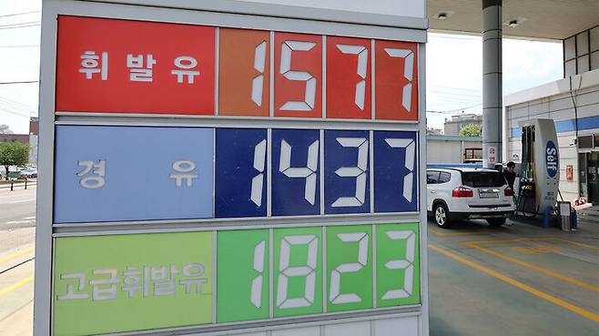▲ 지난 25일 경기 고양시의 한 주유소에 휘발유·경유 가격이 표시되어 있다.