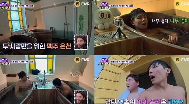 곽튜브와 이준은 루마니아에서 헝가리 부다페스트로 이동해 또 다른 온천 체험에 나선다. 목적지는 유럽 여행자들 사이에서도 ‘버킷리스트’로 꼽힌다는 세체니온천 속 프라이빗 비어 스파. 고풍스러운 미술관을 연상케 하는 두 사람만의 공간, 뜨끈한 온천수, 무제한 생맥주, 개인 욕조까지, 보기만해도 사르르 녹아드는 힐링 코스가 완성된다.