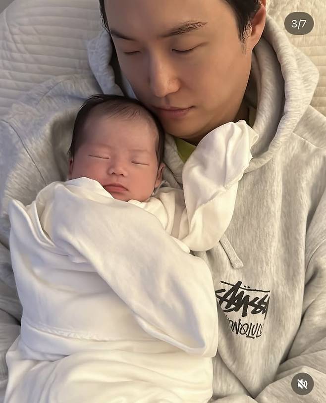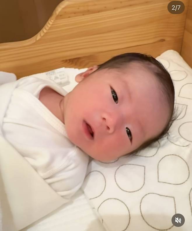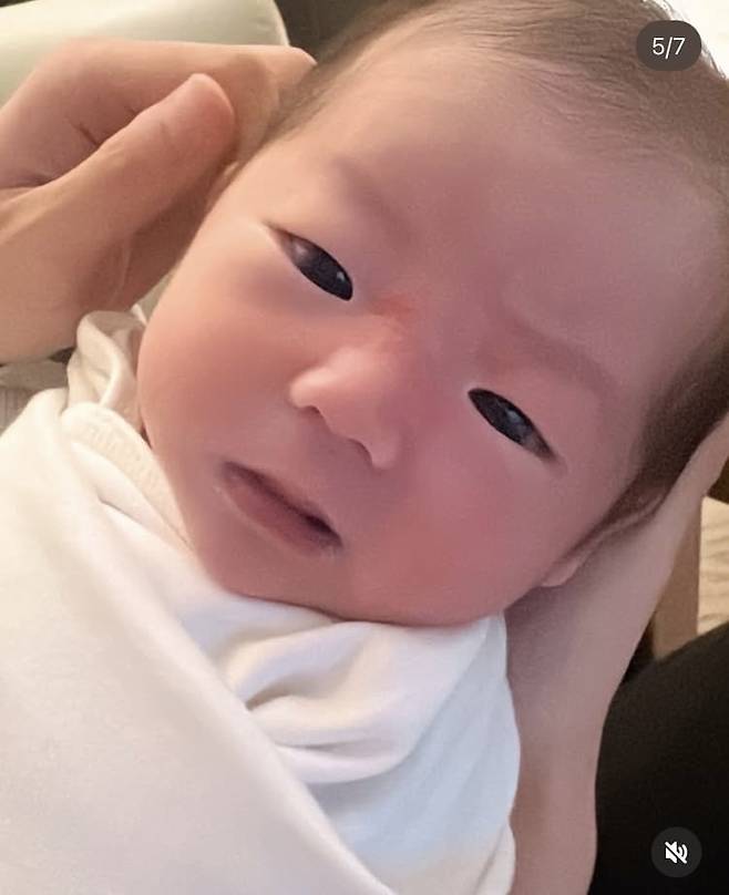 공개된 사진 속 이엘이는 아빠 원혁을 쏙 빼닮은 이목구비를 자랑한다.