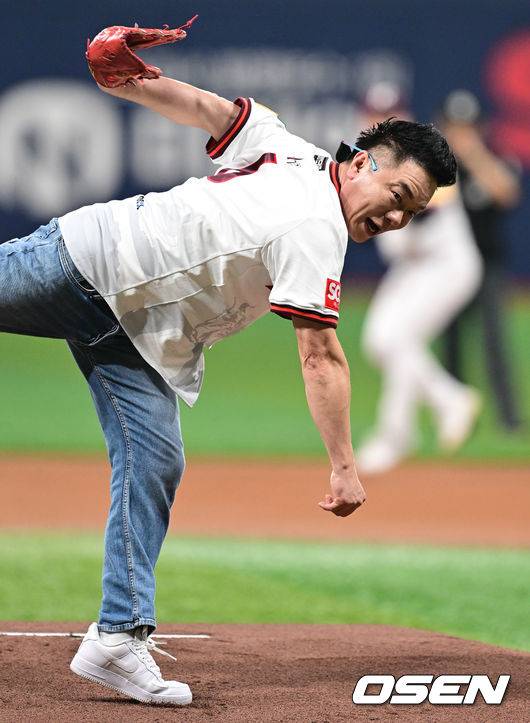 김태균이 시구를 하고 있다. 2025.05.31 /cej@osen.co.kr