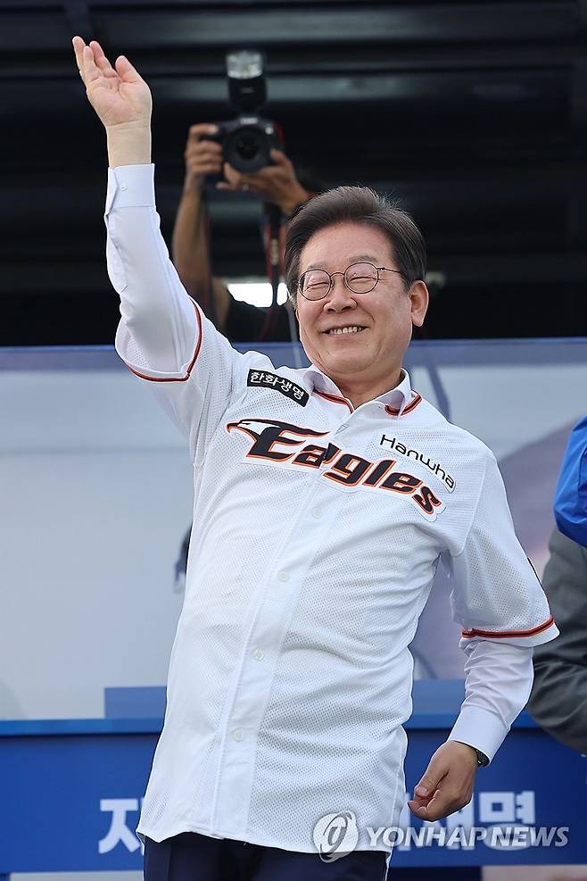 이재명, 송진우의 21번 입고 21대 대선 향해 힘찬 투구