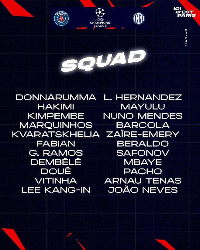 [오피셜] 韓 역사 경신 준비 끝…PSG 공식발표 "이강인, 챔스 결승전 메인 포스터 등장" 소집 명단 포함! 아시아 최초 기록 노린다