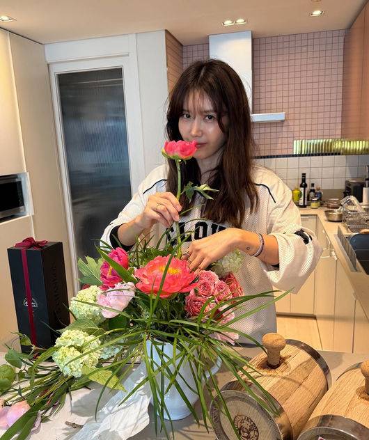 31일 채정안은 자신의 소셜 계정에 사진과 함께 "요즘 홈바이브 집안 곳곳이 꽃향기로 채워지고 오크통에서 술도 술술 익어가는 중(오크통 얘, 좀 재밌네요 ㅎㅎ)"라는 글귀를 적었다.