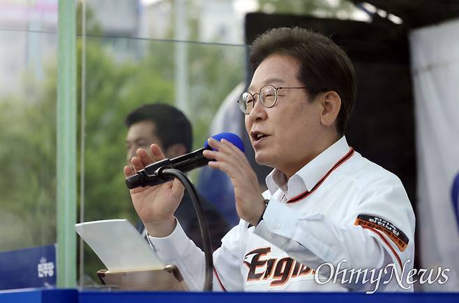이재명, 송진우 21번 유니폼 입고 "통합하는 대통령 되겠다"