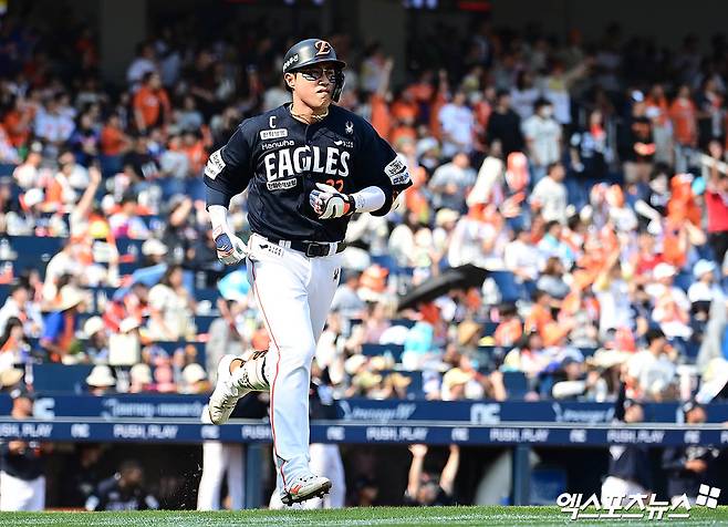 끈질긴 승부, 한화는 9회초에만 6점을 뽑아내고 NC를 따돌렸다. 플로리얼과 하주석의 연속 안타, 문현빈의 볼넷으로 무사 만루 찬스에서 노시환이 밀어내기 볼넷을 얻어냈다. 점수는 4-3.