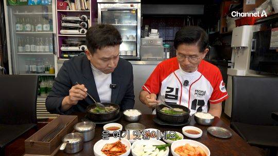 ▶김문수: 시간이 없나. 여기는 좀 먹지. 아따, 맛있다.