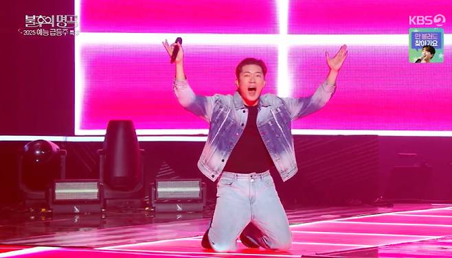 무대에 오른 김대호는 "가창력은 없지만 영혼을 갈아넣겠다. 찬원이형 저 KBS 둘째 될께요"라고 소리쳤다. 이찬원은 'KBS의 아들'로 불리고 지난해 연예대상의 주인공이기도 하다. 이찬원은 "10살 이상 많은 동생이 생겼다"꼬 웃었다. 김대호는 노래가 끝날 때 실신 퍼포먼스까지 선보이며 3연승을 기록했다.
