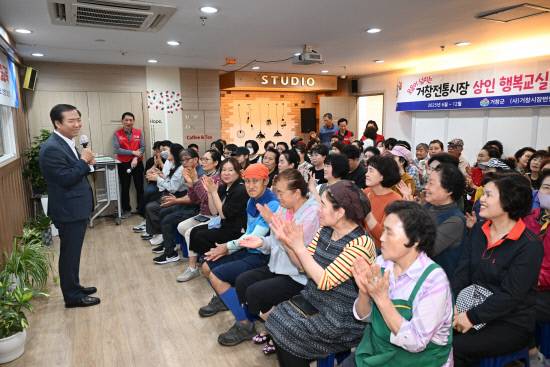 이날 교육 현장에는 구인모 군수도 방문해 "행정과 상인이 함께 협력해 전통시장을 명품시장으로 성장시켜 나가자"고 당부했다.