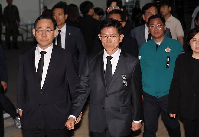 | ▲ 김문수, 해군 초계기 추락 사고 순직 장병 조문 국민의힘 김문수 대선 후보가 31일 경북 포항시 남구 해군 항공사령부 체육관에 마련된 '해군 P-3CK 917호기 순직자 합동분향소'로 향하고 있다 |
