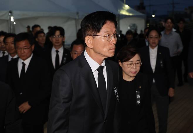 | ▲ 합동분향소 향하는 김문수 후보 국민의힘 김문수 대선 후보가 31일 경북 포항시 남구 해군 항공사령부 체육관에 마련된 '해군 P-3CK 917호기 순직자 합동분향소'로 향하고 있다 |