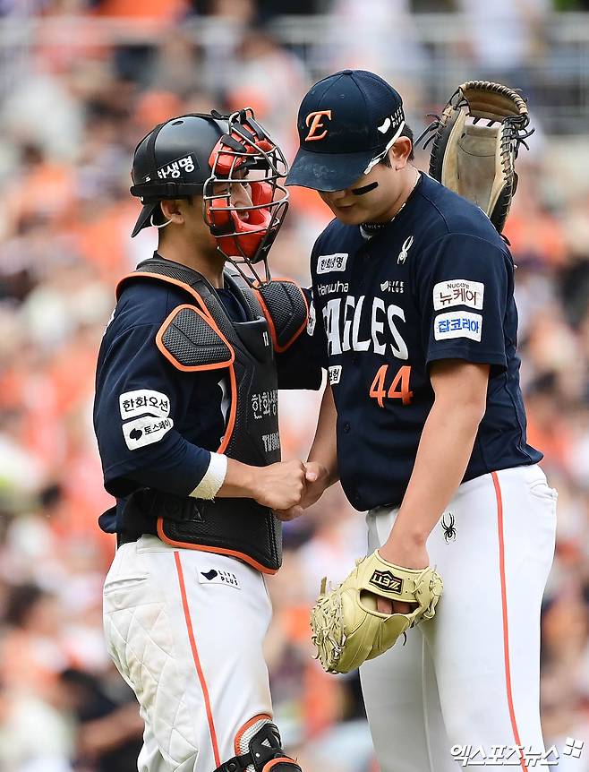 (엑스포츠뉴스 창원, 조은혜 기자) 0점대 평균자책점으로 '철벽'을 자랑하던 한화 이글스 김서현이 자신의 스물 한 번째 생일에 마무리 전향 후 한 번도 없었던 블론세이브를 작성했다. 하지만 흔들리지 않고 끝까지 경기를 끝내고 팀의 2연승을 완성했다.