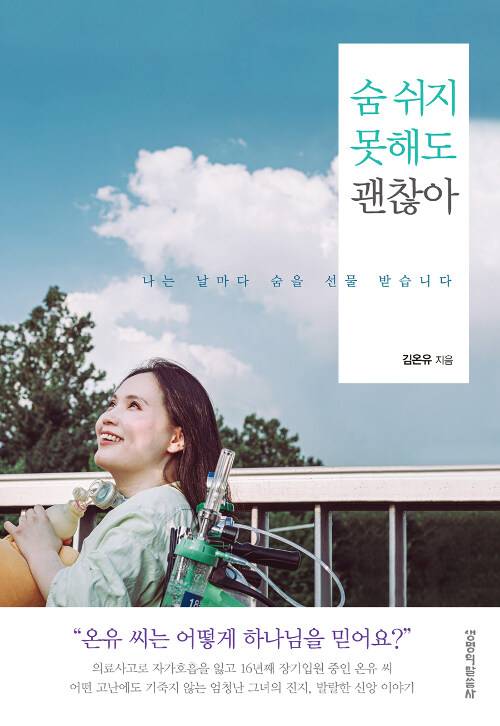 김 작가는 뜻 모를 고난을 마주해야 했던 심경과 신앙 고백, 그리고 기적 같이 이어져 온 앰부 천사를 향한 감사와 애정을 담아 2019년 책 ‘숨 쉬지 못해도 괜찮아’(생명의말씀사)를 펴냈다. 책은 4쇄를 돌파했고 신규 봉사자도 꾸준히 유입됐다. 하지만 코로나19 팬데믹으로 병원에서 외부인 면회를 제한하며 더는 앰부 천사를 만날 수 없게 됐다. 12년간 이어진 릴레이 온유가 중단된 것이다. 그 대신 병원이 그동안 하지 않았던 기계 호흡 치료를 시도하기 시작했다. 호흡 기계가 모든 일상을 해결해주진 않지만, 앰부와 기계를 병행할 수 있게 된 것이다.