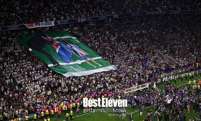 파리 생제르맹 서포터스는 루이스 엔리케 감독과 딸 사나가 나란히 파리 생제르맹 깃발을 꽂는 장면을 형상화한 대형 통천 응원을 펼쳤다.