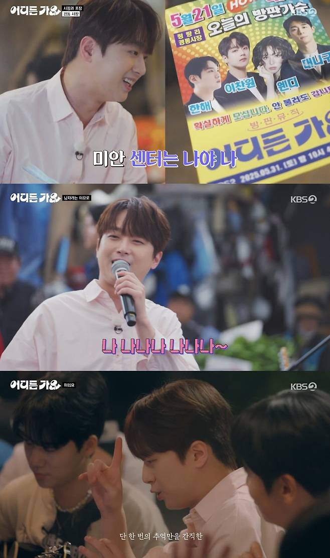 지난 5월 31일 밤 10시 40분 KBS 2TV '방판뮤직 : 어디든 가요'(이하 '방판뮤직')가 첫 방송된 가운데, 이날 이찬원은 멤버들과 함께 '하루의 시작과 끝'이라는 주제로 전통시장과 포장마차에 방문했다.
