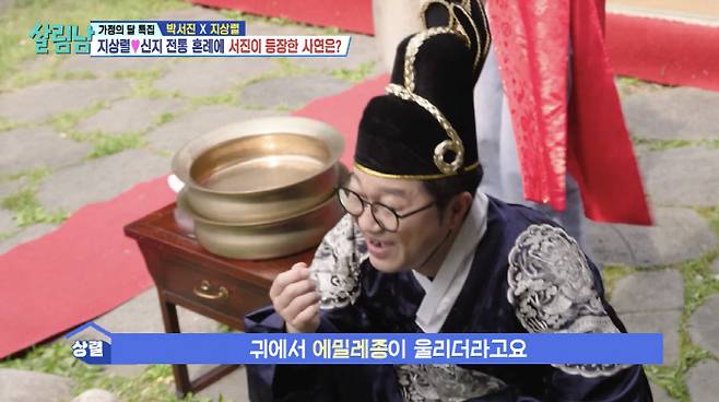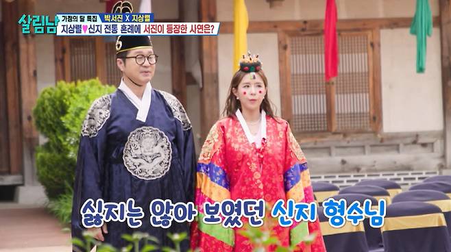 이후 본격적으로 전통 혼례식이 진행됐다. 지상렬의 사회 속에 김용명이 기럭아범 역할을 맡아 분위기를 띄웠고, 손녀 윤아가 화동으로 화기애애한 분위기를 만들었다. 아들, 딸의 화촉 점화에 이어 리마인드 웨딩을 펼친 지상렬 형과 형수는 유쾌하면서도 감동적인 분위기를 이어갔다.