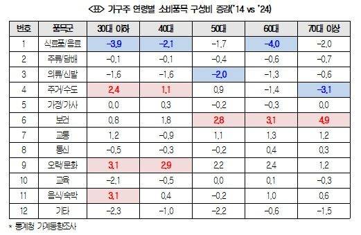 보건·취미 늘고 생필품·교육 줄어