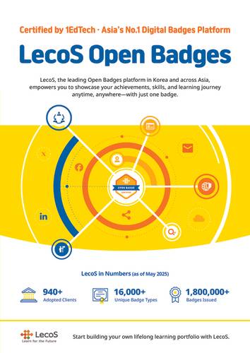 1EDTECH 국제표준 디지털배지인 오픈배지 플랫폼 서비스를 아시아 최초로 도입, 제공해 온 레코스는 국내 디지털배지 보급 4년여만에 아시아 시장 점유율 1위를 달성하게 됐다.