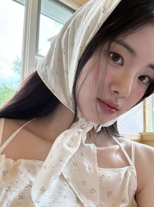 사진 속 신시아는 머리에 하얀 손수건을 두르고 큰 눈망울을 뽐냈다.