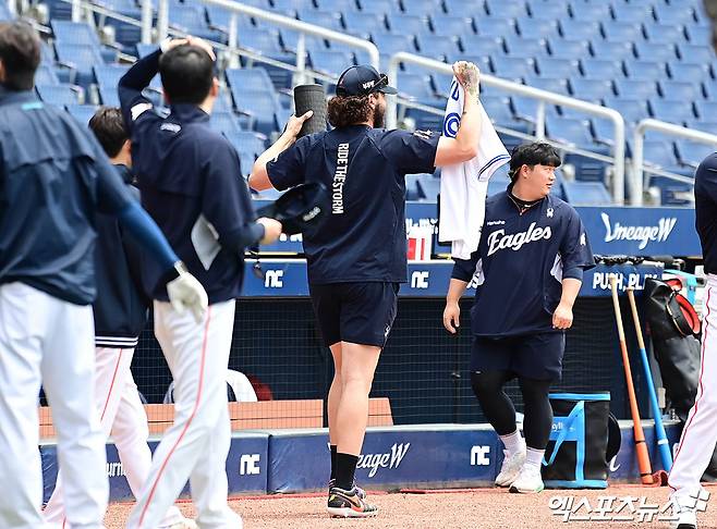 31일 한화 이글스와 NC 다이노스의 경기를 앞둔 창원NC파크, 코디 폰세가 훈련을 마치고 팬들에게 사인을 해주고 있던 류현진을 한국말로 크게 불렀다.