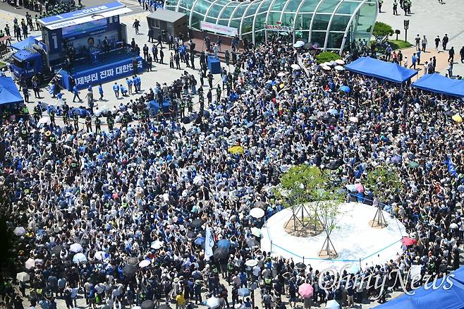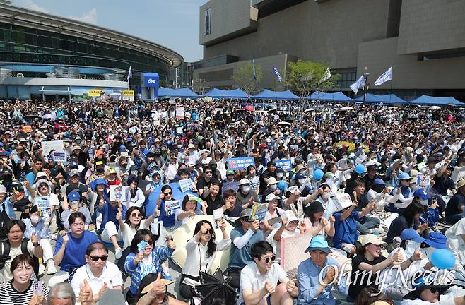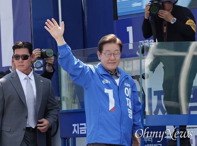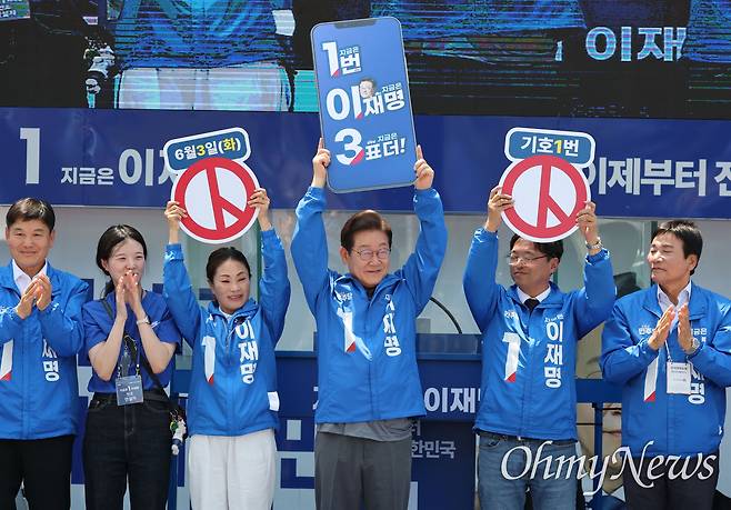 | ▲ 이재명 더불어민주당 대선 후보가 1일 오후 대구 동구 동대구역 광장에서 유세를 하며 지지를 호소하고 있다. |