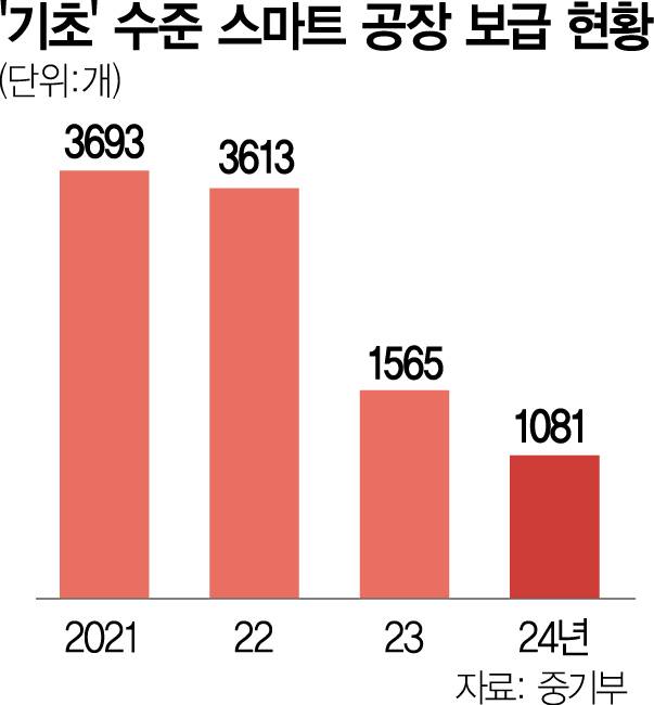 이는 정부가 2023년부터 스마트 공장 관련 예산을 크게 줄이며 양적 확대보다 고도화에 초점을 맞춘 데 따른 결과로 풀이된다. 2021년 4376억 원에 달했던 스마트공장 예산은 2022년 3570억 원으로 감소한 뒤 2023년 1617억 원으로 쪼그라들었다.