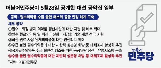 앞서 지난달 28일 민주당이 공개한 '제21대 대통령선거 정책공약집'엔 '수급 불안 필수의약품에 대한 제한적 성분명 처방 등 대체조제 활성화 추진'이라는 내용이 담겼다. 성분명 처방이란, 의사가 처방전에 약의 상품명이 아닌 성분명을 기재하는 것을 가리킨다. 예컨대 '타이레놀'(상품명)이 아닌 '아세트아미노펜'(성분명)을 처방전에 쓰는 식이다.