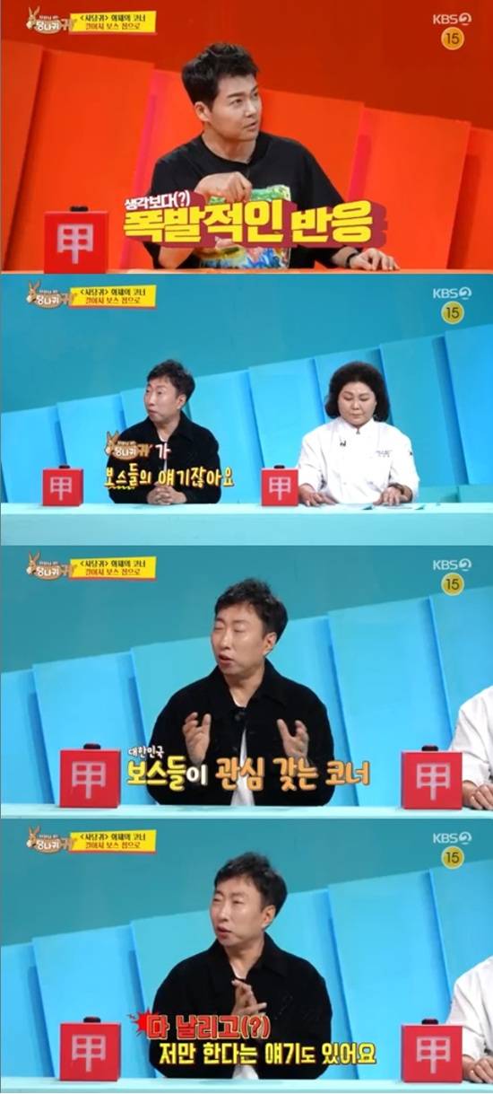 박명수는 "'사당귀'가 보스들 얘기 아니냐"며 보스들이 관심을 갖고 지켜보고 있다고 전했다.