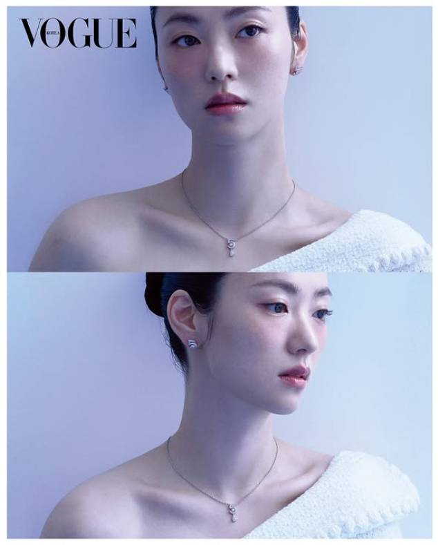 특히, 다양한 주얼리를 활용한 스타일링이 눈길을 끈다. 양쪽 길이가 다른 드롭 이어링과 심플한 네크리스, 여러 개의 반지 등으로 포인트를 더해, 절제된 우아함과 세련미를 동시에 드러냈다. 전여빈은 맑고 투명한 분위기의 배경과 어우러져 마치 호수처럼 고요한 아름다움을 자아냈다.