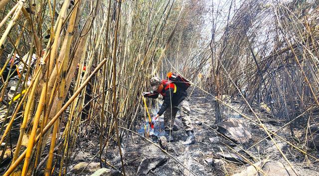 울릉군 산불진화대는 현장서 잔불 감시와 함께 이차 피해 예방 작업을 진행 중 이다.