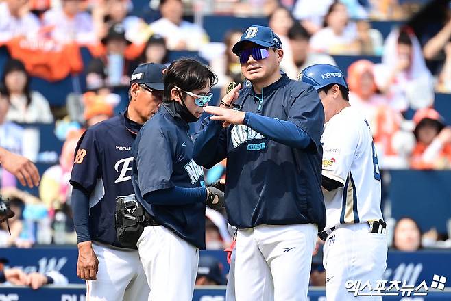 하필 고교 시절 포수였던 외야수 송승환은 이날 선발 이준혁을 등록하며 1군 엔트리에서 말소해야 했다. 이 감독은 "포수 출신인 승환이도 투수가 엔트리 들어와야 하면서 빠지게 됐다"면서 "권희동이 마스크 쓸 일이 없길 바라야 한다. 안그래도 힘들어 죽으려고 한다"고 쓴웃음을 지었다.