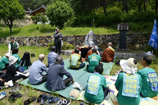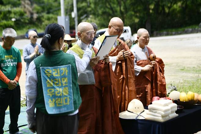 먼저 불교환경연대 한주영 사무총장의 사회로 문수스님 15주기 추모제가 거행됐다. 그동안 대구환경운동연합이 중심이 돼 매년 소박한 추모제를 열어 왔지만 올해는 불교환경연대에서 함께하면서 30명이 넘는 인원이 모여서 스님을 추모했다.