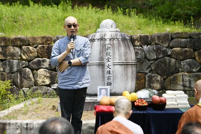 "오늘 이렇게 불교환경연대에서 오셔서 정말 감사한 마음을 다시 한 번 올린다. 오늘은 문수 대종사께서 소신공양을 하신 날이다. 여러분 그분의 그 뜻을 기억하고 또 기리고 그 뜻을 널리 전파해야 될 그런 어떤 의무가 있는 것 같다. 우리 생태계를 살리고 환경을 살리는 일에 적극 동참해 주시고 내년에는 우리 문수 대종사의 그 뜻을 더 널리 펼쳐 더 많은 분들이 이 자리에 참여해서 같이 스님을 추모했으면 하는 마음을 전한다."
