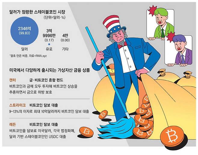 그다음이 자본시장을 통한 주도권 굳히기다. 미국은 이미 비트코인 현물 ETF를 출시했고, 이더리움 현물 ETF에 더해 솔라나와 리플(XRP) 선물 ETF도 출시했다. 크라켄, 로빈후드 등은 블록체인 기반으로 주식을 해외에 판매하기 위한 작업을 진행 중이다. 또 최근 비트코인을 바탕으로 하는 결제 서비스 스트라이크는 비트코인 기반 대출 상품도 출시했다. 잭 멀러스 스트라이크 CEO는 비트코인 2025 행사에서 "자산 대부분을 비트코인에 투자한 상태지만 비트코인을 팔고 싶지 않고 일상생활에서 사용하고자 돈이 필요한 사람을 위해 준비했다"며 "조건에 따라 9~13%의 이자로 최대 10억달러까지 대출받을 수 있는 상품"이라고 말했다.