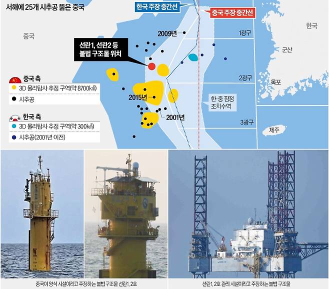 한·중은 어업 분쟁을 조정하기 위해 2000년 한·중 어업협정을 체결했다. 이때 양국의 200해리 배타적경제수역(EEZ)이 겹치는 구역을 잠정조치수역으로 설정하기로 합의했다. 원칙상 해당 수역에서는 일방적인 자원 개발과 어업 활동이 제한된다. 그러나 협정이 발효된 2001년 이후에도 중국의 일방적인 시추 행위가 이뤄졌다는 사실이 이번에 확인된 셈이다.
