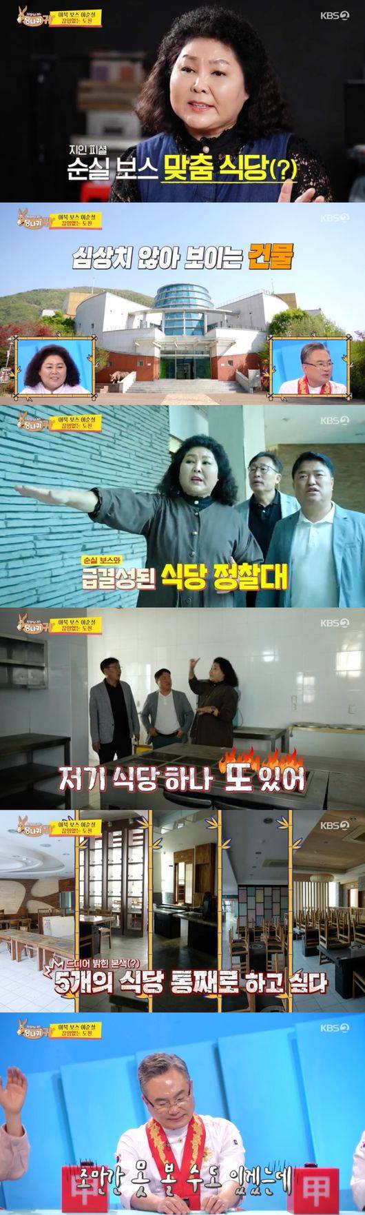 점점 커지는 스케일에 이사들은 인건비를 걱정했고, MC들 역시 이순실을 만류했다. 이순실은 “내가 보기에는 옥류관이다”라며 900평 규모의 5개 매장을 모두 운영하고자 하는 꿈을 공개했다.