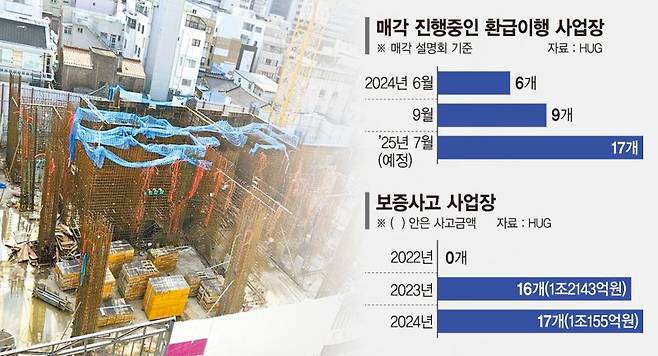 매각 사업장이 급증한 원인은 보증사고가 최근 몇 년 새 폭증했기 때문이다. 반면 경기 침체, 공사비 폭등, 건설사 부도 폭증 등으로 새 주인을 찾지 못하고 있기 때문이다.