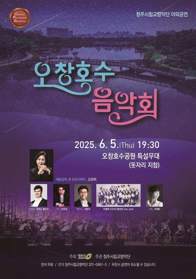 시립교향악단은 오는 5일 오후 7시30분 오창호수공원 특설무대에서 '오창 호수음악회'를 연다.