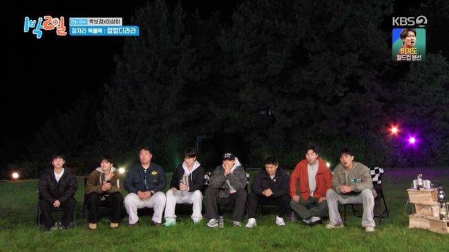박보검은 선한 행동으로 감탄을 자아내기도 했다. 디저트를 먹은 뒤 나온 쓰레기를 직접 치우는가 하면, 버스를 타고 이동하던 중 등받이가 없어 불편할까 걱정해 문세윤과 자리를 바꿔주려고 했다. 박보검은 “야외 예능이 진짜 오랜만인데, 몸 쓰는 걸 좋아한다. 입수도 좋아하고, 스킨스쿠버 자격증도 있다”고 말했다. 박보검을 비롯해 이상이는 예능에 두려운 건 없다면서 복불복 걱정도 없다는 자신감을 내비쳤다.