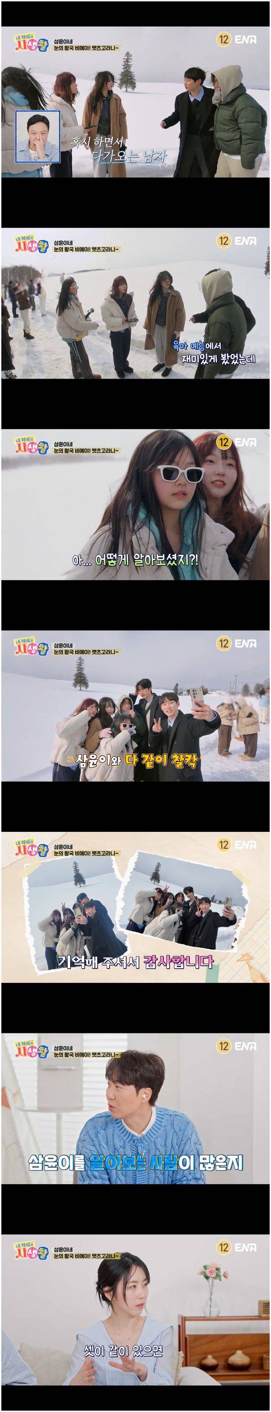 1일 방영한 ENA 예능 '내 아이의 사생활'(이하 '내생활')에서는 일본 여행 마지막날, 막내 다윤이 원하던 자연 경관을 보러 갔다. 일명 크리스마스 트리로 유명한 설원에 도착한 자매들은 외투를 벗어가며 인생 샷을 건지는 데 열혈을 보였다.