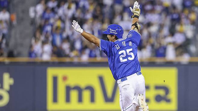 타자 김태훈은 kt wiz 시절인 2015년과 2021년에 홈런 1개씩 때렸고 2023년 삼성 이적 후 이날 첫 홈런을 신고했습니다.